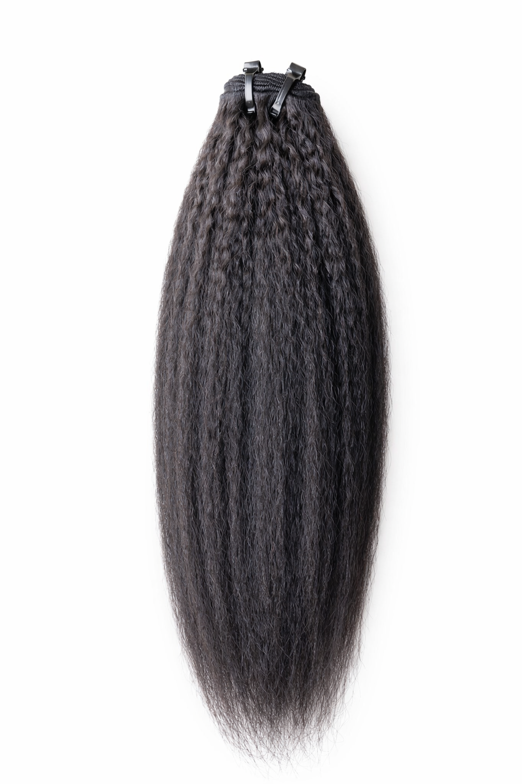 Natural, textured, and effortlessly beautiful. Our Kinky Straight bundles mimic the look of blown-out natural hair, giving you fullness with a realistic finish.